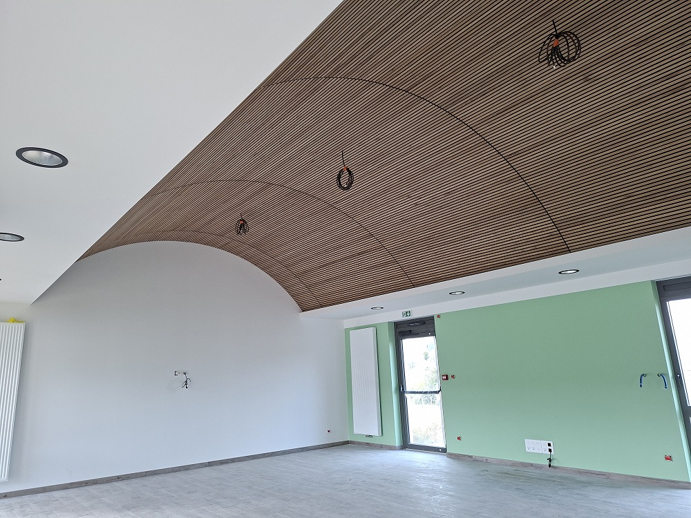 La salle du conseil s’habille de son plafond bois. . . Hâte de voir le résultat !